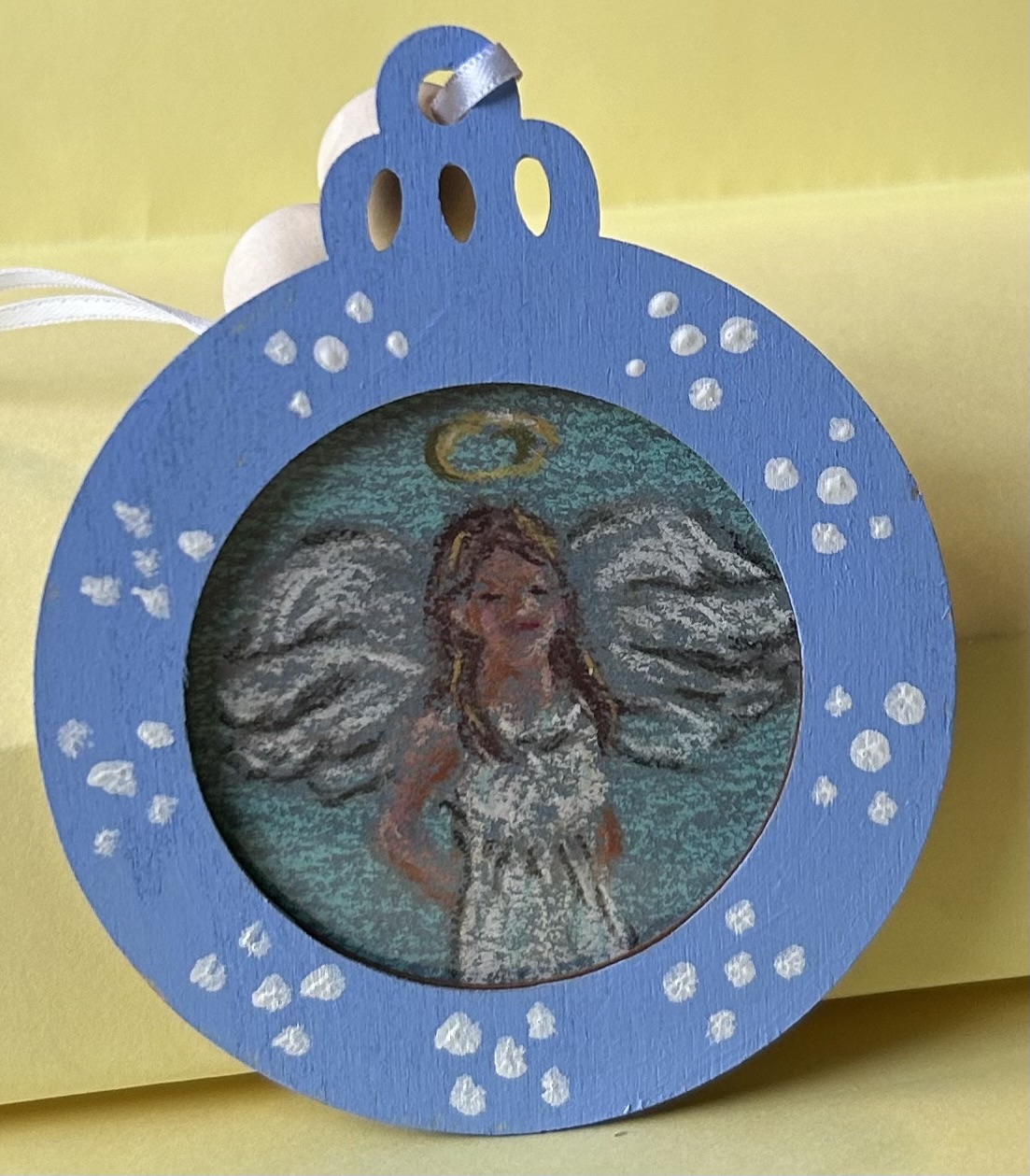 Blue Wood Frame – ORIGINAL pastel painted ornament
