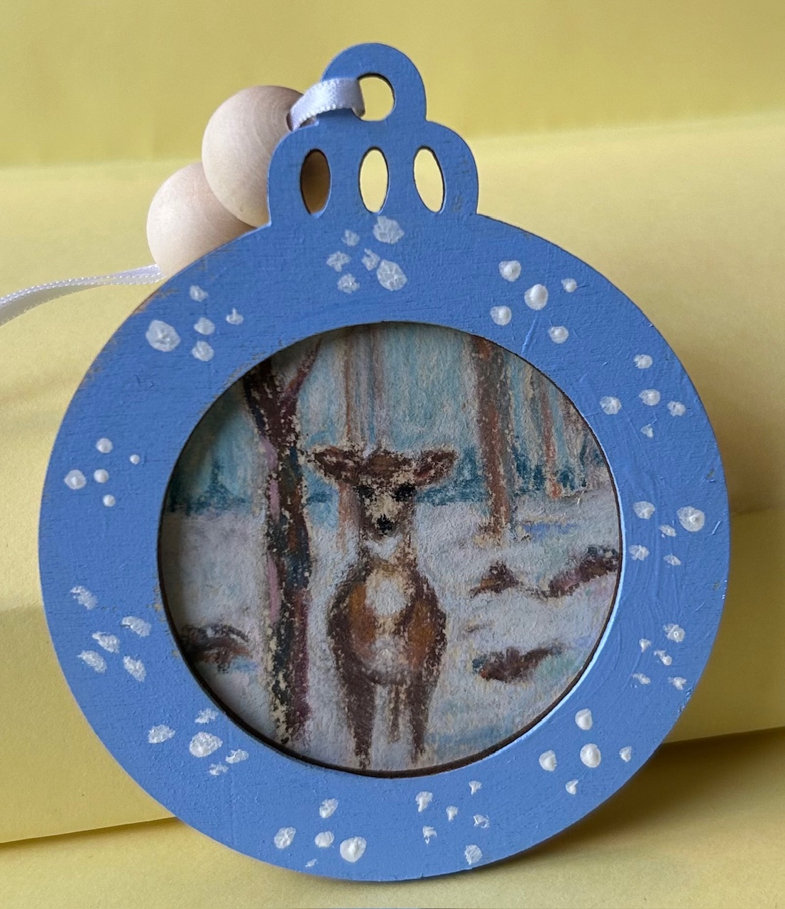 Blue Wood Frame – ORIGINAL pastel painted ornament