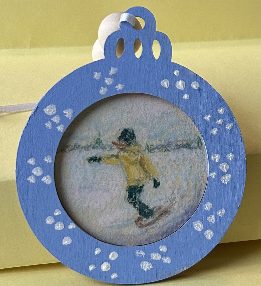 Blue Wood Frame – ORIGINAL pastel painted ornament